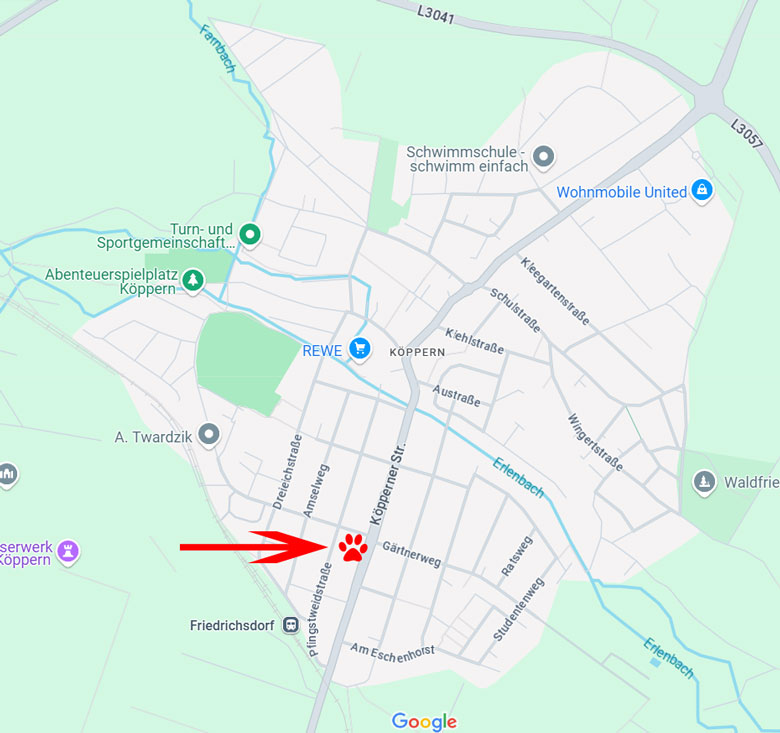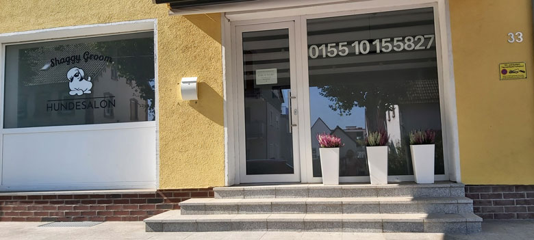 Der Salon befindet sich in einem gut sichtbaren gelben Gebäude, an der Hauptverkehrsstraße in Köppern.